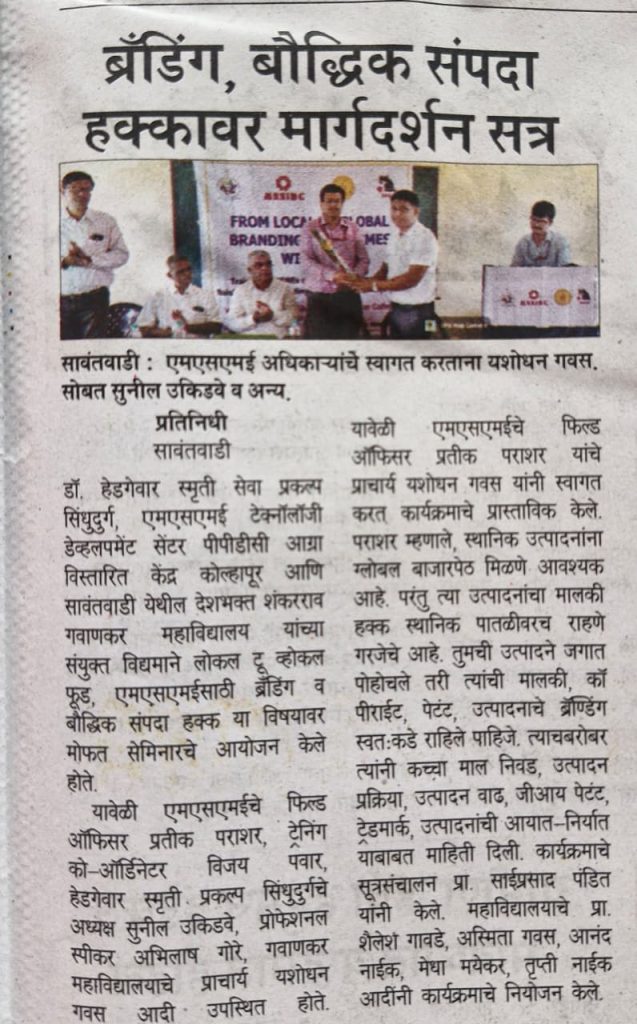 A special guidance session on Branding and Intellectual Property Rights (IPR) was successfully organized at Gawankar College to raise awareness among entrepreneurs and students about the importance of protecting their business ideas, brands, and innovations.