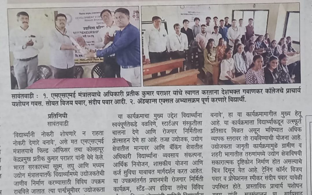 During the event, it was announced that a joint workshop will soon be conducted by MSME and Gavankar College for district-level entrepreneurs to provide further guidance and practical exposure.